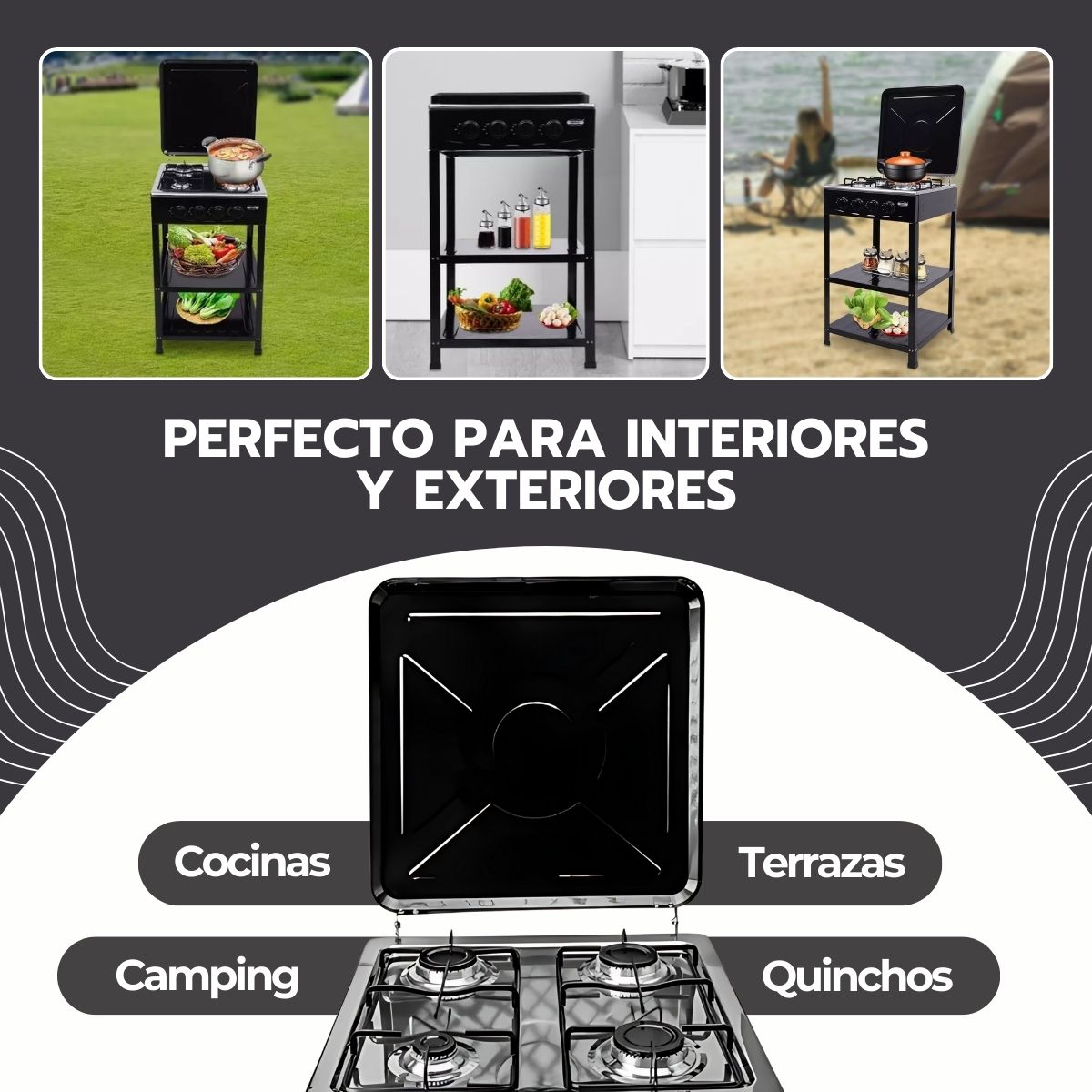 Cocina Encimera Gas 4 Platos con Mesa y Tapa de Acero