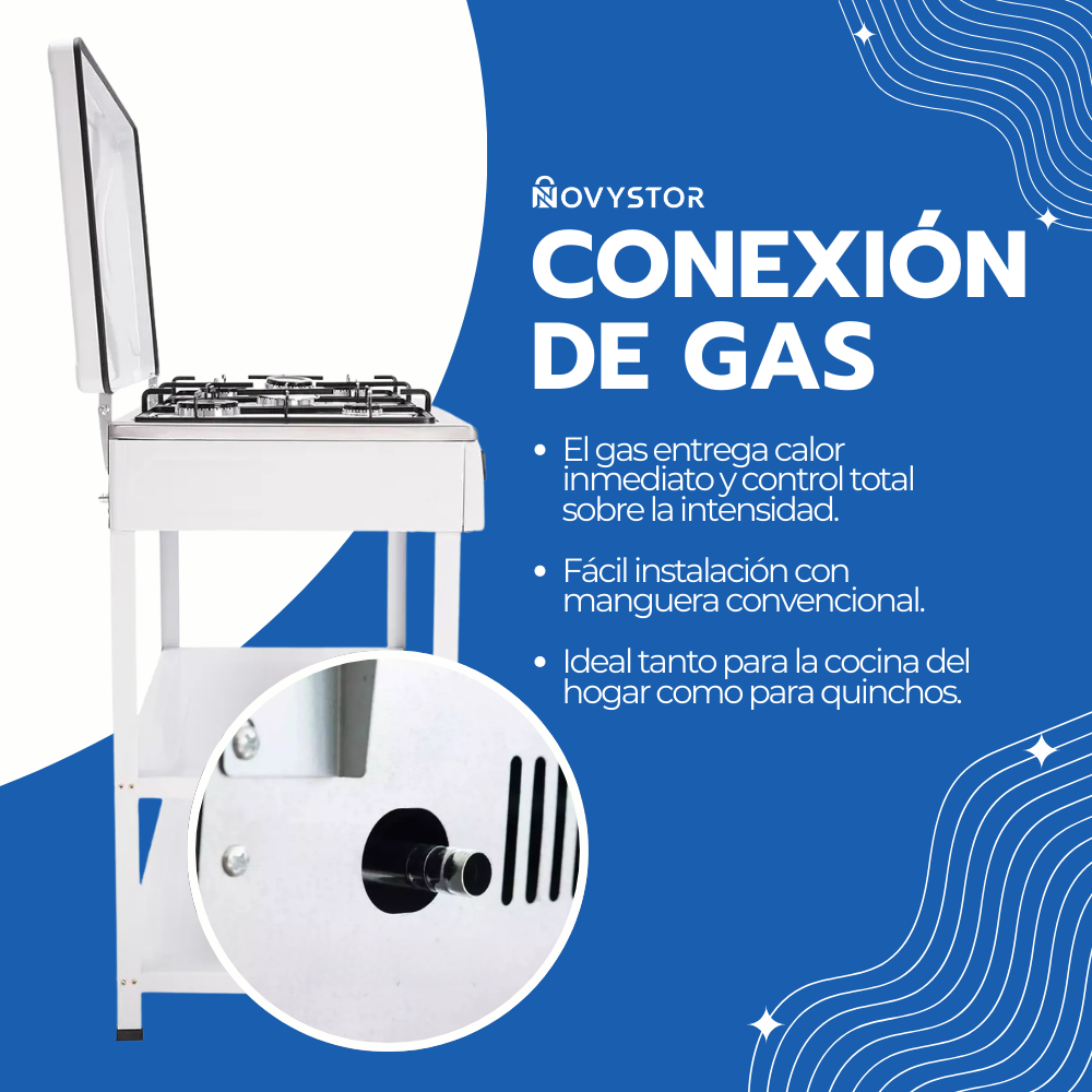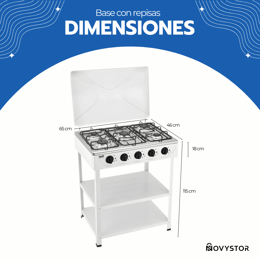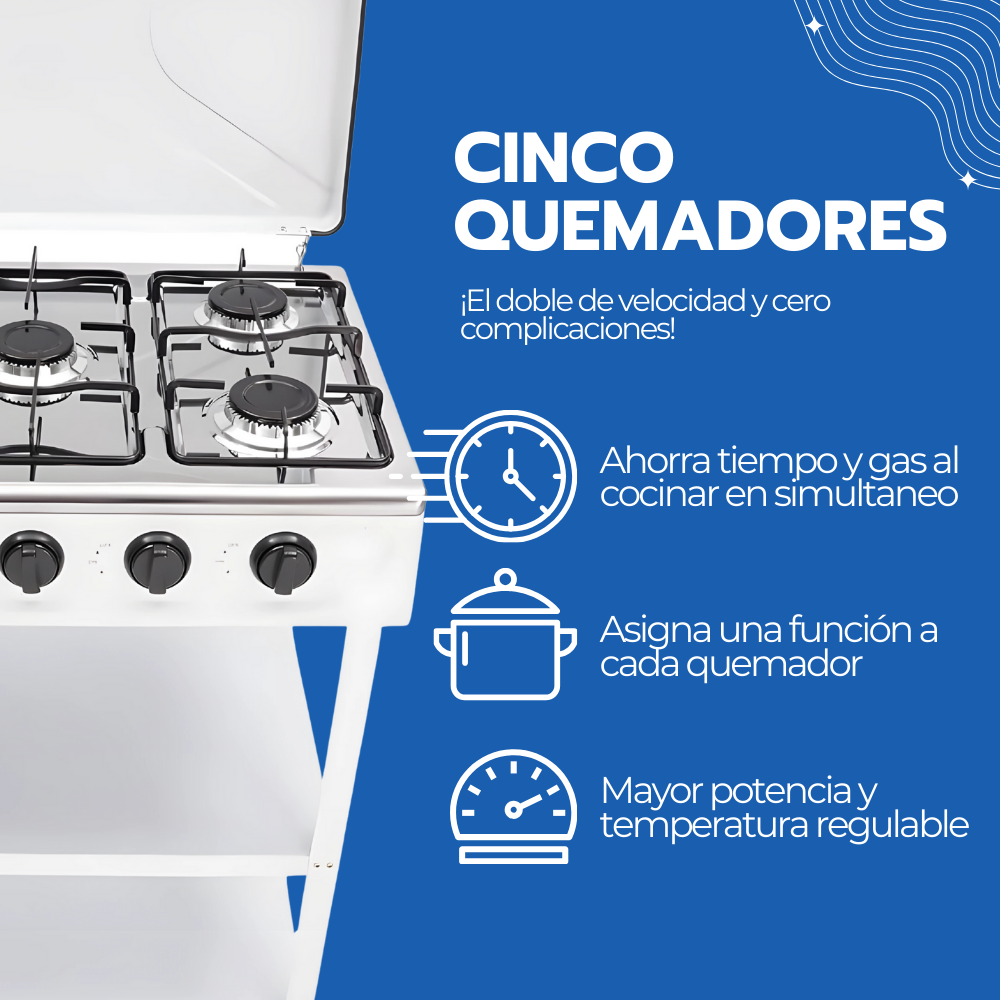 Cocina Encimera Gas 5 Platos con Mesa y Tapa de Acero